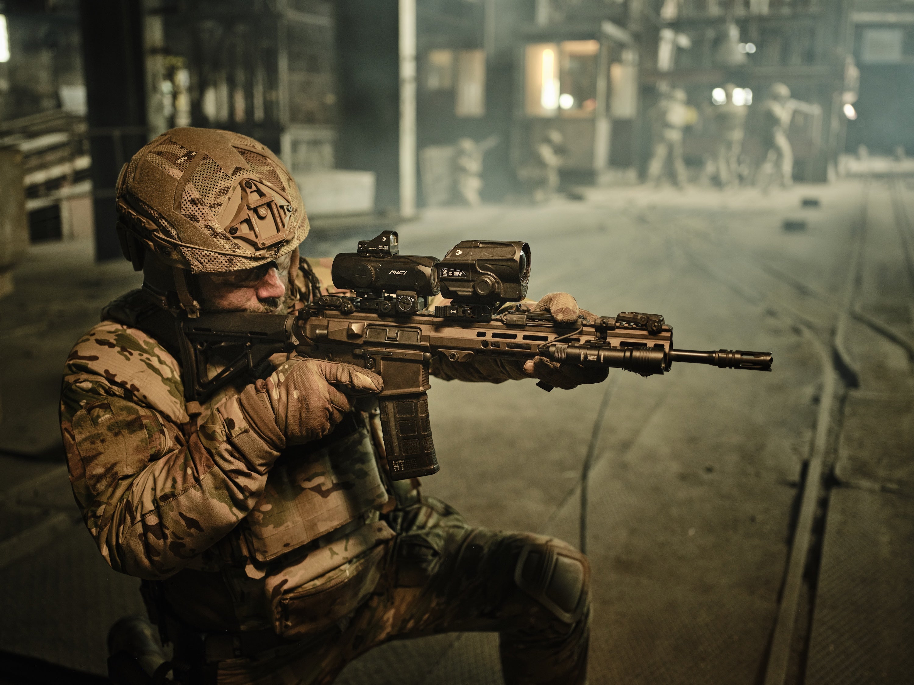 The AVCI 1x-4x GI+'s wide field of view in 1x mode delivers clear imaging for urban combat, while the 4x mode ensures superior accuracy in mid-to-long range shooting. An ultra-bright illuminated reticle augments hit precision, even in dim environments. It is engineered with reticle variations, meticulously designed to be compatible with both 5.56mm and 7.62mm calibers.